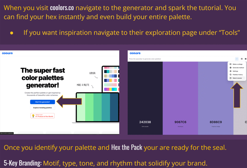 When you Hex The Pack, you imprint your creative DNA, before you ship. It starts with a hex code (#RRGGBB): the place on the chart you choose to exist. Painters show it in recurring tones. Photographers and directors show it in their grade. Show up with a consistent palette and people recognize the world you’re building, no matter the medium.